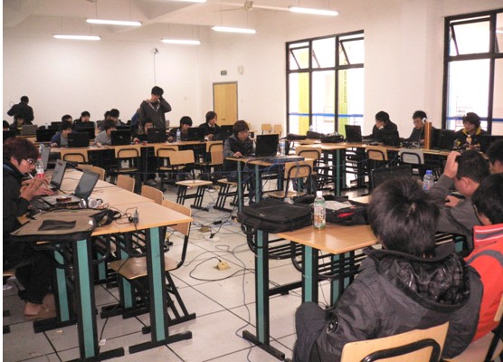 为引导在校大学生正确对待电子游戏,号召同学们远离网络游戏,适当的接触积极向上的竞技游戏,本月11日上午10时,软件工程系联合计算机协会在446、450教室举办了电子竞技大赛。大赛共分魔兽DOTA组和CS 1.6组两组同时进行。