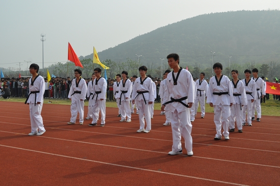 伴随着激昂的运动员进行曲,国旗方阵、校旗方阵、彩旗方阵、裁判员方队、教职工运动员方队、各系运动员及表演方队一一走过主席台。各方队用昂扬的热情和精彩的表演向全体参会人员展现了高博师生饱满的精神状态和昂扬的斗志。随后郭院长致开幕词,他代表院领导向为本届运动会的筹备付出辛勤劳动的教职员工表示衷心的感谢!向刻苦训练、备战校运会的老师们、同学们表示亲切的慰问!向本次大会的裁判员、教练员表示崇高的敬意!郭院长对开展运动会的意义进行了阐述并预祝本次运动会能取得圆满成功。接下来的裁判员和运动员代表宣誓也表明此次运动会将会是一个公平公正的比赛。最后王院长宣布学院第三届田径运动会正式开赛。