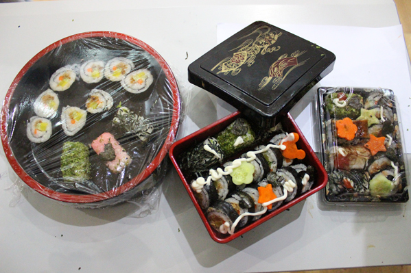 节目最后,大家就开始动手做寿司了,许多同学都做出了非常精致可口的寿司。