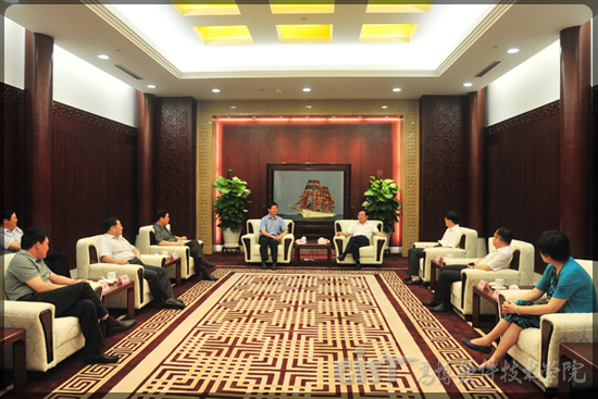8月29日,南京信息工程大学党委书记、校长李廉水以及党委常委副校长周伟灿、副校长李北群,校办、党办主任吴忠宁,校长助理兼滨江学院院长申双和一行来我院交流访问。学院理事会理事长杨世良、执行理事长王斌泰,理事李舒、学院院长王兆明、常务副院长郭纯儒、党委书记兼副院长李建生、副院长杨向群等领导于实训楼会议室热情接待了来访团。