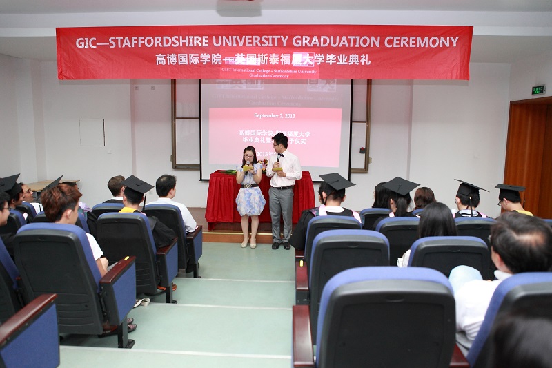 高博国际学院于9月2日在报告厅隆重举行了毕业典礼。这标志着第二届中英国际学院(gic)的学生在苏州,以全英文授课方式,被成功授予了英国大学高等教育文凭。本届学生已成功完成国际本科项目3年国内阶段的学习,约35%的学生即将奔赴英国公立斯泰福厦大学继续完成本科阶段的学业。