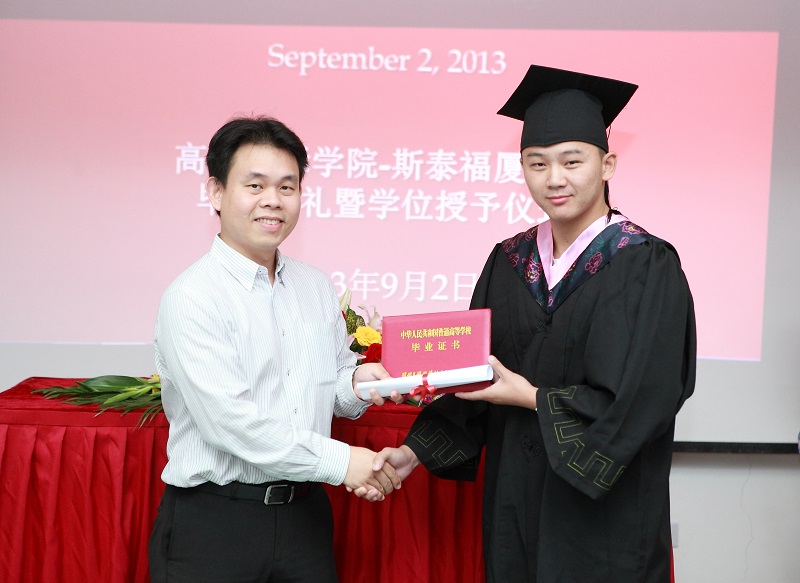 黄博士说,2009年,本着吸收、引进国际优质教育资源,创新人才培养模式,为中国乃至世界培养国际化专门人才的理念,我院与英国斯泰福厦大学建立了合作办学关系。在五年的合作办学过程中,两校诚信合作,精心设计,认真实施,使得这个项目越办越好,本科升学率和毕业生就业率越来越高。