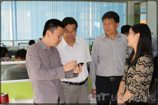 丁晓昌副厅长还考察了学院培训中心、移动互联网技术实训基地和软件开发项目工场。学院积极开展面向全国大学生就业前的职业培训,为学生提供真实的企业工作环境,学生在项目经理的指导下完成项目开发,积累真实的项目经验,至今已培训各类人才8000余人次。丁晓昌副厅长就发挥高职院校重点建设实训基地作用,共享优质资源,开展院校交流协作,使更多的大学生受益,与学院领导班子进行了讨论。