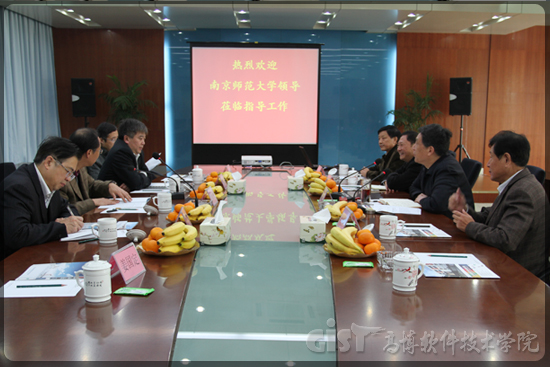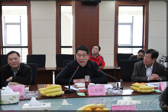 交流会上,王兆明院长介绍了学院的基本情况、周边的自然环境、产业环境、人才培养模式、专业优势、办学特色等,着重介绍了学院在校企合作、中外合作办学、面向校外大学生培训等方面的亮点成绩。傅康生副校长重点介绍了南京师范大学中北学院,该院是一所文、理、艺、工、管多学科发展的综合性大学,并表示高博学院的信息技术发展值得学习与借鉴。华桂宏副校长希望通过进一步的交流学习促进双方学科的优势发展。