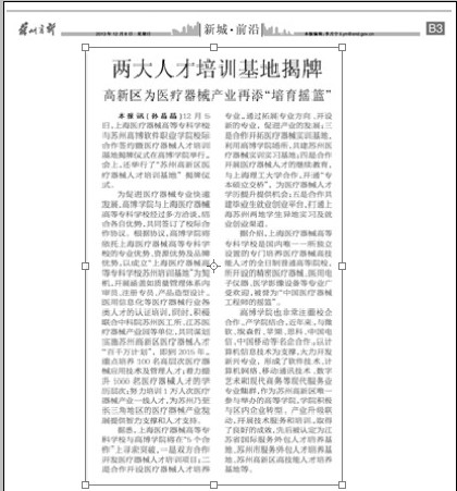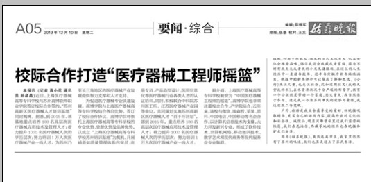 姑苏晚报报到学院“校际合作打造医疗器械工程师摇篮”