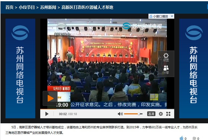 苏州电视台1套报道学院打造医疗器械人才培训基地
