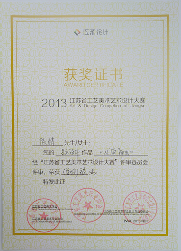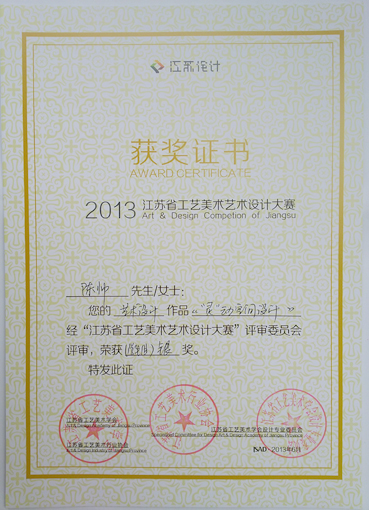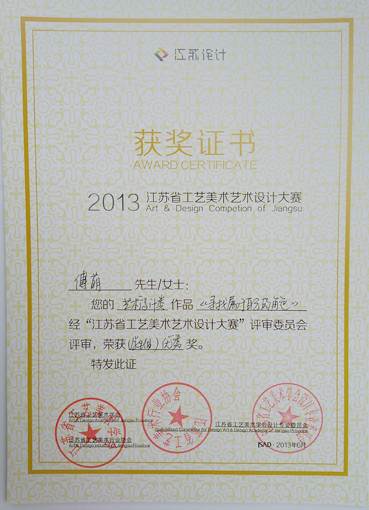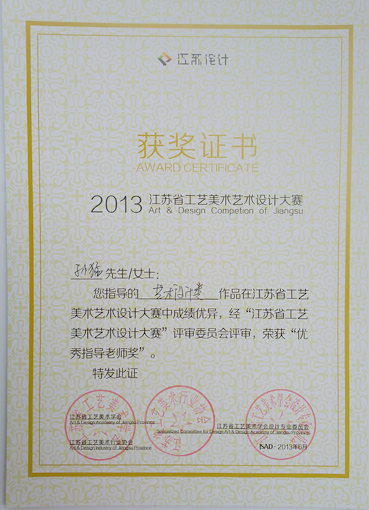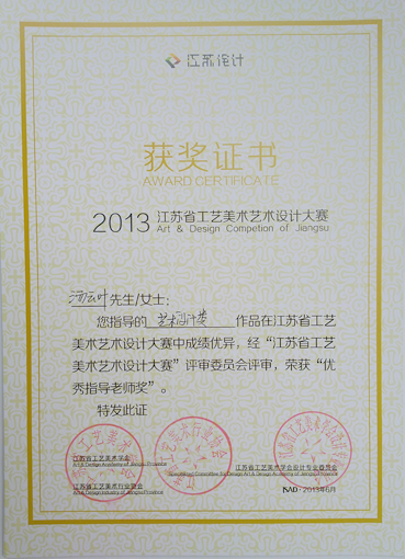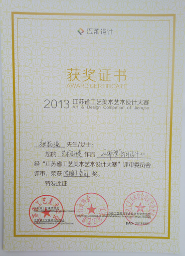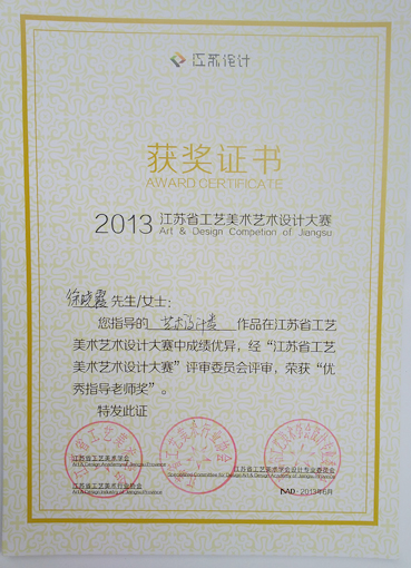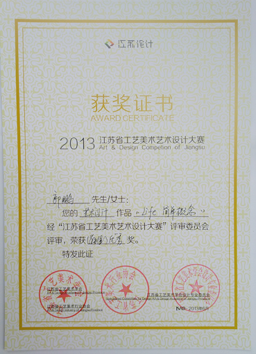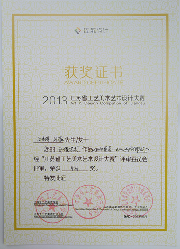 2013年6月在徐州工程学院举行的“2013江苏省工艺美术艺术设计大赛”共计收到全省34所高校师生及9个专业设计公司参赛作品1800余件。此次比赛的参赛作品内容涵盖了视觉传达、环境艺术、服饰设计、工业设计、动漫设计、数码艺术及其他等多个专业方向,省内各高校师生的踊跃参与以及作品质量的提高体现了本届比赛的组织水平及江苏省工艺美术艺术设计大赛的影响力。