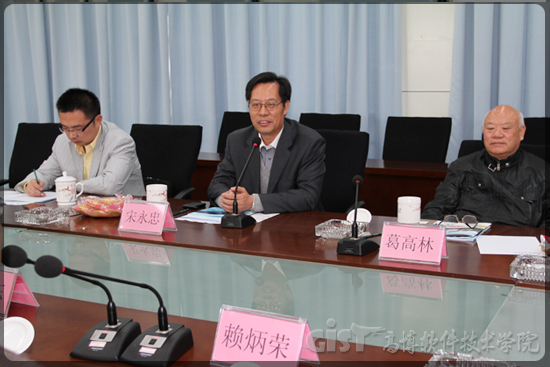 会上,王兆明院长简要介绍了学院的基本情况、培养模式、校企合作、办学特色等,并分析了学院办学面临的形势与机遇,希望能够与南京师范大学加强交流与合作,促进双方深层次发展。赖炳荣董事长归纳总结了软件产业行业发展的趋势,指出学院将利用已有资源优势在移动互联网领域做深做强,培养技术领先的应用型人才。
