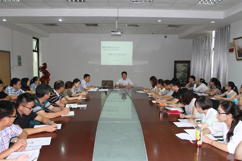 随着学院的逐步发展,2013年、2014年学院共引进教职工达60余人,对于这些新教师的入职培训工作也不容忽视。8月26日,学院在行政楼会议室开展了新教师入职培训会,王兆明院长莅临会场为新教师介绍了学院的办学历程、校园文化和发展规划,随后人事处处长、纪委书记郎勇生与新教师共同学习了学院的规章制度等行政文件,并从教师的责任和义务方面阐述了“为人师”的要求。接下来的培训中,人事处副处长龚三琼副教授、基础部张相轮教授分别就教师职称评定和师德修养等方面做了专项报告。入职培训第二天开始,根据人员岗位,由教务处和学生处分别对专任教师和辅导员进行了专项培训。在专任教师培训中,不仅有教育教学工作实务培训,还分别安排了文理课程示范观摩课。在辅导员专项培训中,不仅有党委宣传部长、院办主任李建国与参训辅导员交流学生管理工作的任务与要求,还有尤绿树、陈粟裕等优秀辅导员代表与之交流实际工作中的心得体会。