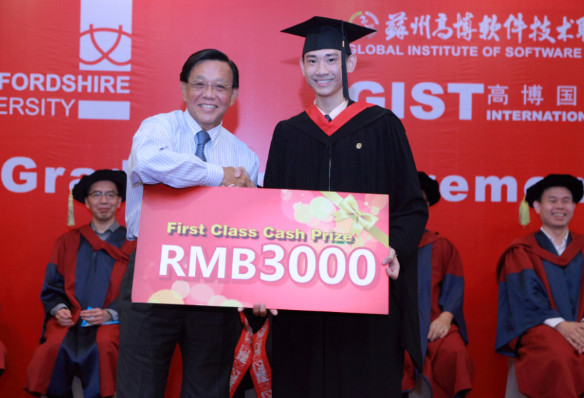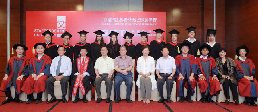 2014年8月29日下午两点三十分,苏州高博国际学院首届国际学生毕业典礼在苏州工业园区福朋酒店隆重举行。在雄壮的中华人民共和国国歌声中,主持人宣布2014年高博国际学院首届国际学生毕业典礼正式开始,十名来自于马来西亚、印度尼西亚和哈萨克斯坦的国际学生,经过4年的刻苦学习,顺利完成英国斯泰福厦大学国际商务专业全部课程,准予毕业并获得学士学位,其中,leelong jiat(李隆杰)和teoh khai liang(张开亮)两位同学荣获一等荣誉学位。这是一件可喜可贺的事情,即使在su本部,能获得如此殊荣只占10%不到。另外,有4名国内学生获得su和苏州高博软件学院双专科毕业证书。