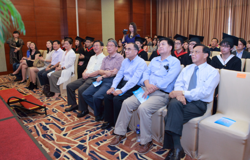 首先,高博教育集团副董事长张英杰博士代表董事会讲话,张博士表达了对毕业生的欣赏和衷心祝贺,希望学生们在以后的工作、学习和生活中能够发挥所学专长,大展宏图。接着,高博国际学院院长赵春铭教授讲话,他对十四位毕业生表达了真挚的祝福,尤其是lee long jiat和teoh khai liang两位同学获得了英国su 大学一等荣誉学士学位,为学院赢得了荣誉,这与他们自身努力以及老师们的辛勤付出分不开。同时赵院长代表全体师生对长期以来支持学院工作的各位家长表示了衷心的感谢。然后,特地从英国赶来参加毕业典礼的斯泰福厦大学海外合作开发部主任庄博士做了一次简短又精彩的演讲,庄博士说正值su建校一百周年之际,我们迎来了高博国际学院首届毕业生,这是一个激动人心又难以忘怀的时刻,为学生们取得的成绩深感高兴和自豪,学生们在老师们的教导下,通过自己的努力,达到了自己预期的目标,成为人生道路的转折点。