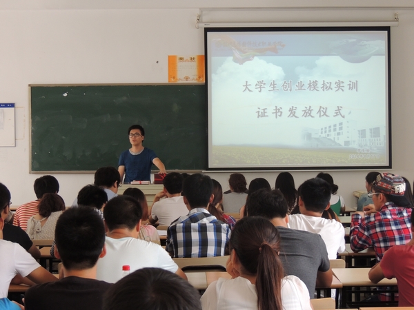 在今年上半年我院举办的大学生创业模拟培训中共有88名同学顺利通过培训,拿到了创业模拟培训合格证。为表彰这些同学,同时激发我院学生自主创业热情,鼓励和促进有志向的大学生勇于开展创业的学习和实践活动,培养具有创新意识、实践能力和创业精神的人才,9月17日下午14点,我院大学生创业模拟实训班证书发放仪式在教学楼228教室举行。学生处王绍福处长及各系大三辅导员参加了本次活动,活动由团委书记邹艳星主持。
