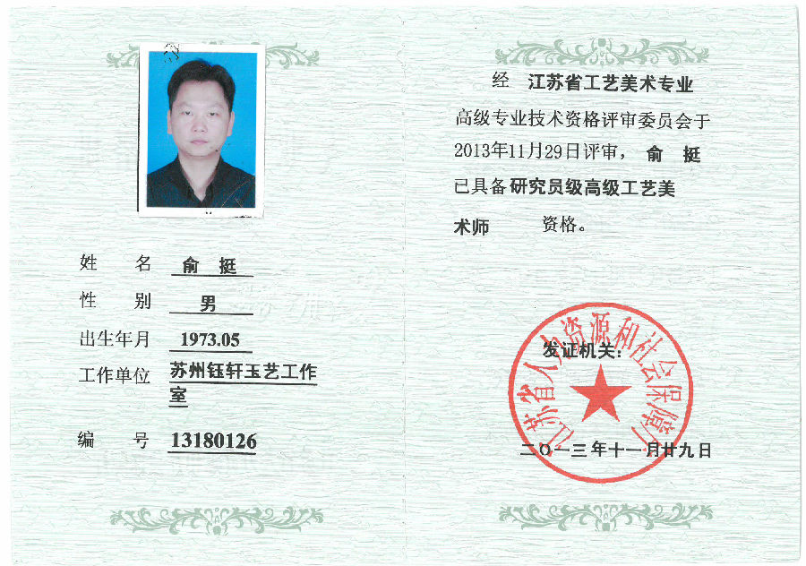 俞艇和他的玉雕作品