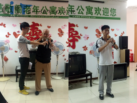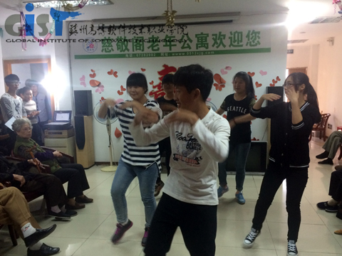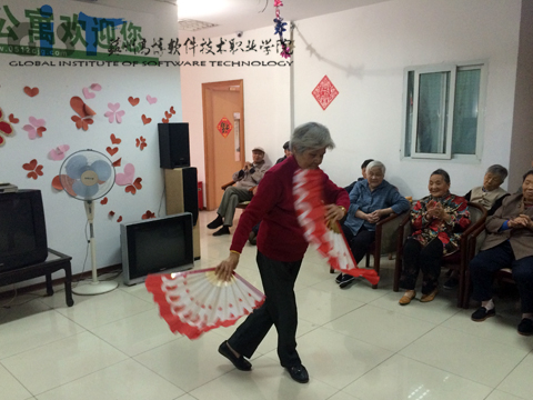 下午两点,同学们满怀热情来到敬老院,受到了院长和老人们的热情欢迎。在自我介绍后,大家开始与老人沟通交流,一边跟老人谈心,一边帮老人捶背按摩,气氛温馨融洽。休息过后,同学们为老人们表演了精心准备的文艺节目。动感十足的舞蹈《小苹果》、吉他独奏、美声独唱《夕阳红》、葫芦丝吹奏等节目博得老人们的阵阵掌声。老人们更是用他们的扇子舞、独唱和口琴吹奏表达了对同学们到来的激动心情。