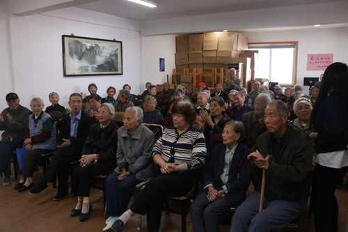 志愿者们刚一抵达老年公寓,就受到了工作人员和老人们的热烈欢迎。同学们顾不得休息,立刻赶到老年中心的活动室准备表演的节目。听说有大学生志愿者来表演节目,老人们都很高兴,纷纷赶来观看。节目开始前,志愿者们站在门外,搀扶并帮助行动不便的老人进入活动室就坐,并给他们送上糕饼水果。面对如此周到的服务,老人们都笑得合不拢嘴。节目开始了,一曲《最美不过夕阳红》瞬间带动了现场的气氛。二胡独奏《凤阳花鼓》乐声悠扬、如泣如诉。小合唱队演唱的一曲的《茉莉花》清脆悦耳,歌声婉转动听。爷爷奶奶们听着熟悉的旋律,手里打着节拍,和志愿者们一起唱和着。