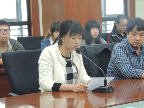 随后,学生代表王宇上台发言。她代表苏南民间工艺学院全体学员许下承诺:他们将珍惜现有的学习资源,好好学习。同时虚心向各位大师们求教。努力提高专业技能,充实自身。为学院发展贡献出自己的力量。