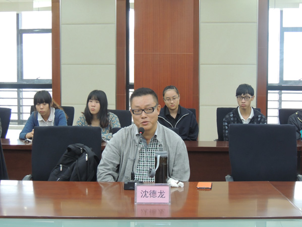 紧接着,苏绣大师沈德龙发表讲话。沈大师表明:大师们参与学院办学宗旨是“不为名,不为利”。是尽社会责任,同时也是为了文化的传承。教学中不仅仅是手工技能方面的教育,更是正确价值观思想体系的教育。他们期待着学员们学成之后,将中华民族优秀传统工艺传承下去。