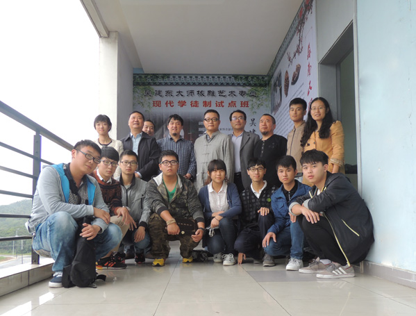 会议结束之后,大家来到位于教学楼五楼的核雕实训基地参观学习。同学们都目不转睛,观赏着每一件精美的核雕作品。吴大师向大家讲解了基本的雕刻手法以及材料选取,使大家对核雕的制作工艺有了初步了解。吴大师还与爱好核雕的同学们交流互动,鼓励他们在日后的学习中勇于探索、刻苦钻研,将核雕文化传承下去。最后,大家在核雕实训基地前合影留恋,用相机定格苏南民间工艺学院发展进程中历史性的一幕!