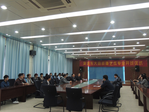 2014年10月29日中午12:30,“现代学徒制试点班―吴建东大师核雕专业开班仪式”在实训楼二楼会议室举行,苏州高博软件技术职业学院副院长杨向群、苏南民间工艺学院院长苏绣大师沈德龙、副院长张斌、副院长吴建东大师等出席了会议。