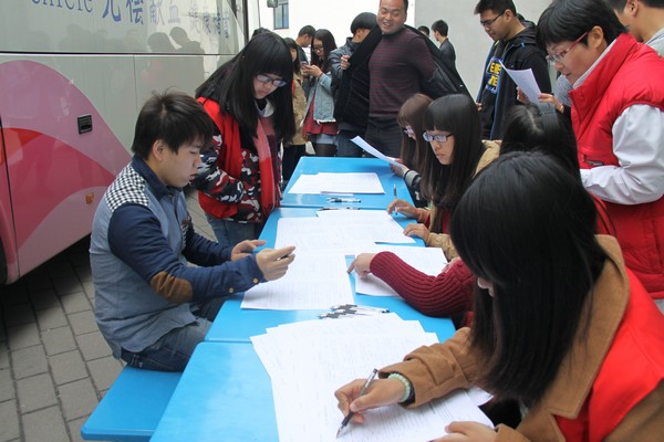 11月19日中午11点,由学工处、院团委主办的“青春中国梦 志愿我先行”无偿献血活动在工商银行前正式拉开帷幕。初冬的寒气挡不住同学们的热情,踊跃的参与中留下了高博学子爱的印记。昨天献血结束,共有170多名师生参与了无偿献血活动,创学院献血人数的新高。