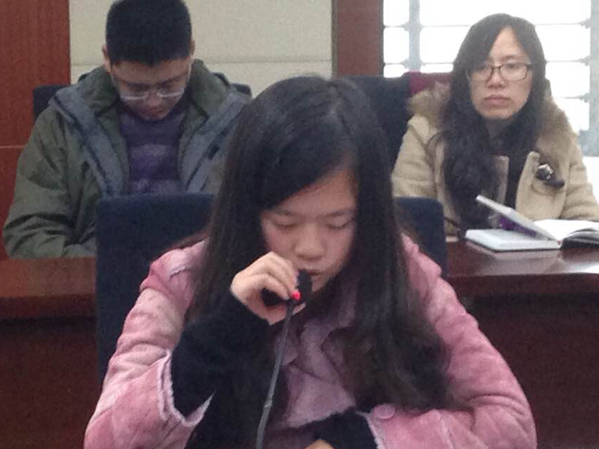 学生代表李晶上台发言。她首先感谢学院领导对2014级艺术专业学生关怀。参与玉雕的学习她感到无比的自豪。她代表该专业全体学生许下承诺,将努力学习,不辜负各位领导老师以及父母的殷切期望。在以后的学习生活中致知于行、刻苦钻研争做中华玉石文化的传承人!
