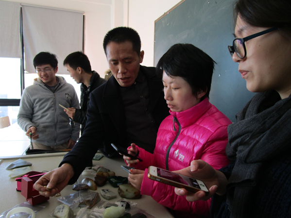2014年12月17日下午,苏州工艺美术师、苏州工艺美术协会玉雕专业委员会常务理事、东渚工艺行业协会玉雕分会副会长苏州民间艺术家协会会员王建新与苏州东渚工艺美术行业协会会员、苏州工艺艺术品鉴定师张钰明走进苏南民间工艺学院,给同学带来了一场别开生面的鉴宝课。