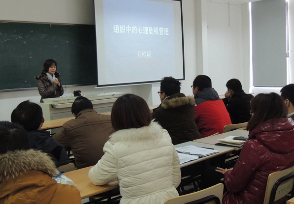 12月18日上午9点,我院“大学生心理危机干预”专题培训在教学楼126教室举行,本次培训特邀苏州大学高级心理咨询师刘稚颖教授来校培训,院办主任李建国、各系(院)党总支副书记、全体辅导员、学生处全体人员和部分导师参加了培训。
