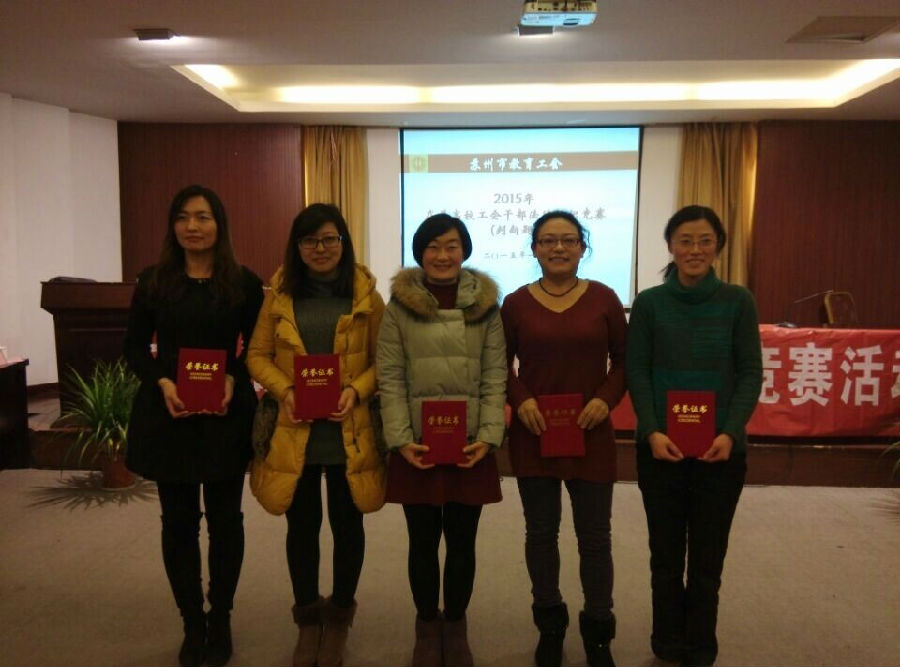 2015年1月9日,在工会女工主任胡芳的带领下,女工委员张琳玲、工会小组长韩丽东、文体委员张宝禹一行参加了由苏州市教育工会组织的高校工会干部法律知识竞赛活动。工会在接到竞赛通知后,杨向群主席高度重视,召开专题会议布置任务,督促女工主任胡芳挑选精兵强将来积极备赛。参赛同志在赛前翻阅了大量资料和集体讨论学习,在比赛当日经过四轮激烈应答、论述后,我院代表队在十几支队伍中脱颖而出,最终以总评分数第四的成绩获得此次知识竞赛的二等奖。
