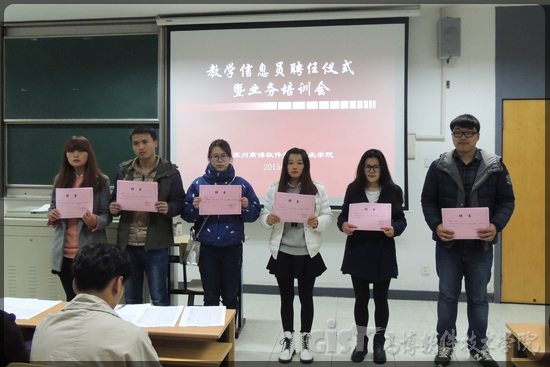 马处长首先宣读了《关于聘请汪秀娟等123名同学担任班级教学信息员的决定》,并与倪院助向各院系的教学信息员代表颁发了聘书。倪院助与马处长分别作了大会发言,强调了组建学生教学信息员队伍的目的和意义,以及信息员肩负的使命和责任,勉励受聘的信息员同学要细心观察、耐心工作、热心服务,认真做好信息的收集、反馈和沟通工作,不负同学和学院的重托,为学院教学质量的不断提高贡献自己的力量。胡玮老师对教学信息员进行了培训,对于工作制度、流程、方式进行了讲解,让信息员对于自己的岗位有一个清晰的认识和理解。
