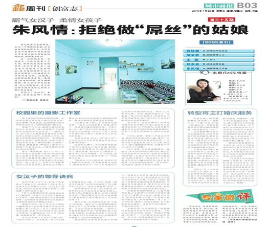 深入学习“两会”精神,认真贯彻李克强总理作出的“大众创业,万众创新”的重要指示,在学院领导的高度重视下,在学工处、团委的指导下,我院大学生创业取得了可喜的成绩,其中朱风情就是一位佼佼者,她的创业历程被《城市商报》期刊刊登。