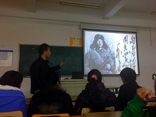 张伟老师从雷锋的个人经历、光荣事迹、生活作风、钉子精神、高尚品格等方面为同学们详细诠释了雷锋同志的光辉形象,也通过对比近年来社会上发生的一些不良现象,引起同学们深深的反思。