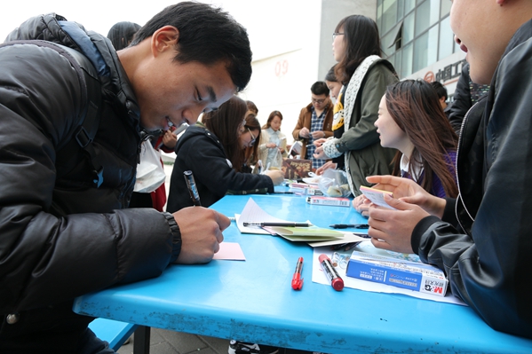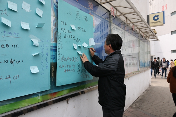3月26日中午,大学生心理健康委员会在工商银行门口举行以“传递希望、传递梦想”为主题的漂流瓶活动,活动受到了广大师生的欢迎。截止活动结束,“心愿墙”上有近200条祝愿和各类许愿,准备的80个漂流瓶也都在同学们的许愿中在校园内漂流……