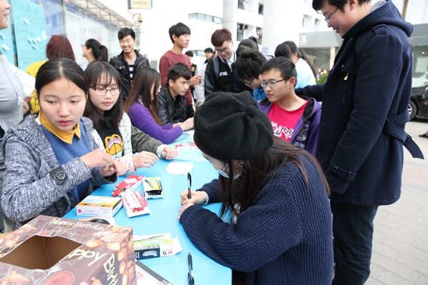 活动开始前,心委会成员们早早的来到场地做好各项准备工作。活动开始后,大家向过往的同学们介绍漂流瓶活动的内容,不少同学都被吸引积极踊跃地参与进来。在学生干部的帮助下,同学们或在漂流中投入自己的心愿,或在“心愿墙”上写下自己对未来希望,对朋友、亲人的祝愿。为了调动更多的同学参加我院心理健康教育活动的积极性,心委会还特别设置了时下最热门的微信抢红包活动,通过线上线下双互动,让更多的学生可以享受活动,参与活动。