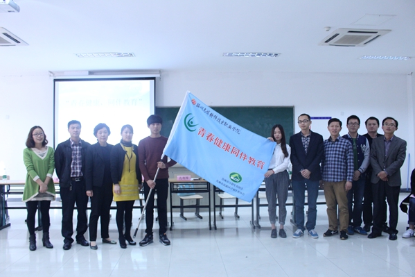 孔利琴处长发言,她表示高新区计生协对高博学院开展的同伴教育活动非常重视,她希望借同伴项目的开展进一步加强合作,希望通过引导和教育,帮助青少年掌握正确的两性知识,加强自尊自爱和自我保护意识。孔处长为我院同伴教育主持人代表赵滨洋和屠雯雯授旗,希望他们带领其他同伴教育主持人做好同伴教育活动。