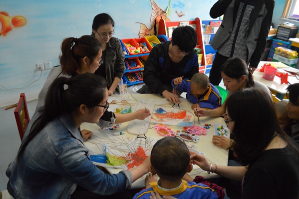 4月1日下午,大学生心理健康委员会,大学生青年志愿者协会在学生处袁晖老师的带领下,看望东渚镇福利院的小朋友们,并与他们一起绘制风筝,共度了一个愉快的下午。