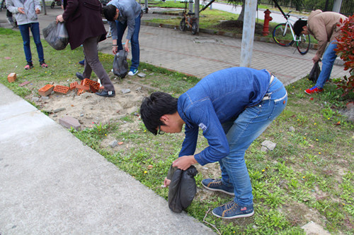 在活动之前,主席合理安排了各部门工作。虽说四月大地回春、万物复苏,可雨后的下午却依然春寒料峭,但这些都挡不住同学们内心的火热,同学们到达各自任务的地点后,大家默契的配合,积极投入清洁工作。此次活动让我们更深刻的体会了校园的整洁的重要性,提高了同学们的环境保护意识。