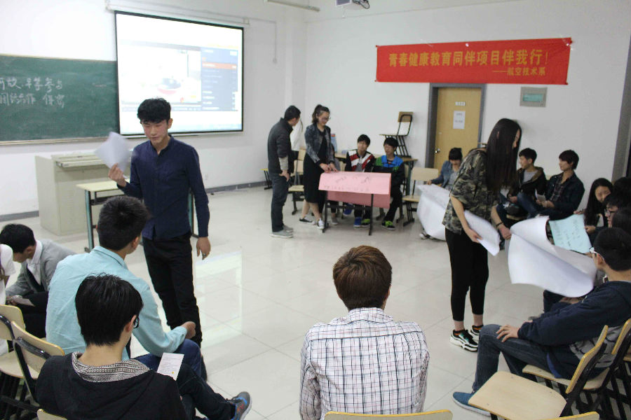 2015年4月23日晚,航空技术系1455班同学在教学楼242教室举办了“青春健康 同伴教育”活动,为了增加同学们的兴趣,促进活动的顺利开展,我系1455班同学与来自软件工程系同学进行部分交换,并取得了不错反响。