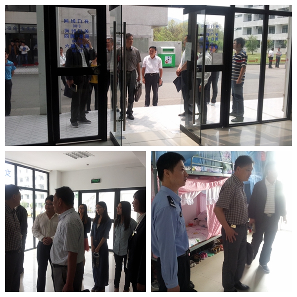 为进一步推动安全校园建设,维护高校和谐稳定,5月27日上午,省教育厅、公安厅检查组曹广龙、佘建国、陈淑娟、张超光等一行四人莅临我院进行校园安全情况检查。检查组由高校、公安厅、消防支队等代表组成。检查的主要目的是了解掌握各单位安全隐患排查整改情况,进一步排查问题、整改隐患,推动各项安全防范措施落实,深化全省平安校园建设。