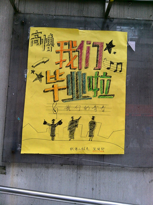 软件工程系学生会成员于5月下旬,在系领导的指导下积极为毕业生准备了毕业海报与板报设计,于5月26日正式与毕业生见面,毕业生们感慨万千。