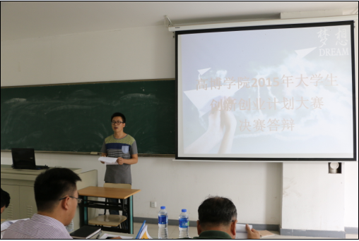 6月10日下午14:30,我院“激情创业 逐梦青春”2015年创新创业计划大赛决赛在教学楼124教室隆重举行。担任决赛的评委是基础部主任张正炎、学生处处长王绍福、教务处副处长胡玮、招生就业处科长冯志华、后保处张宏虎老师。院长助理李建国、各组指导老师到场参加。比赛由团委书记邹艳星主持。