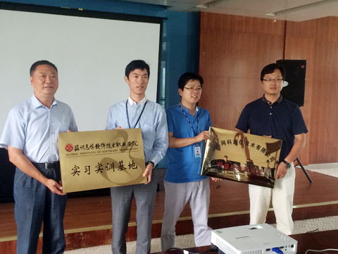 6月29日下午,信息工程系与山石网科通信技术有限公司校企合作签约暨设备捐赠仪式在学院科技楼会议室举行。山石网科通信技术有限公司苏州总经理曹红民、技术总监宋军、培训经理张自良、苏州高博软件技术职业学院副院长杨向群、系副主任丁荣晖、教师代表及首批通过山石网科hcsa认证的学生代表出席签约仪式。