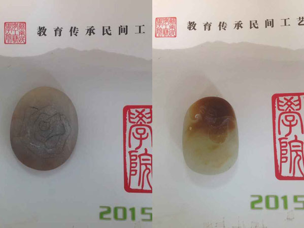 孔庆婷老师向大师和领导汇报了现代学徒制核雕、玉雕教学试点班的教学情况,介绍了作品答辩的基本要求和答辩流程。答辩开始,同学们依序上场,就创作设想、题材选择,制作过程等方面进行阐述。同学们经过一学期的努力学习成果喜人。同学不仅拥有扎实的基本功,既可以根据老师的要求雕刻,又能打破常规设计出新颖别致的作品。答辩过程中,评委们针对每位同学作品特点和不足进行提问,同学们也抓住这次难得的机会向大师们请教。