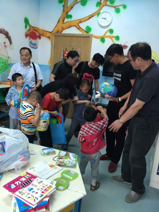 中心黄老师热情接待了各位老师,孩子们看到新买来的玩具和书籍、学习用品很开心。黄老师说 “我们的教学工作分工不同,都在自己的岗位尽力而为。您们给孩子们送来的礼物,孩子们特别喜欢。以前把玩具给他们都不会玩,现在不仅会玩,而且会有创意的玩。感恩众多志愿者给孩子们的关爱。”看着这些天真、稚幼的孩子,老师们也深受教育与感悟。