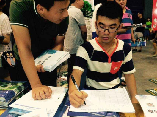 7月26日上午,招生小组成员张骥、李波 山东潍坊富华国际会展中心