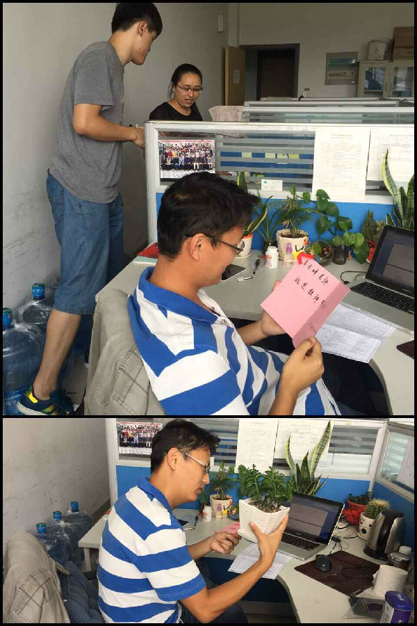 2015年9月10日下午软件工程系由学生会主席方双带领着学生会成员一一走访软件工程系所有老师并通过赠送纯手工贺卡和绿色盆栽以表达对老师节日的祝福。礼物虽小但都凝聚着软件工程系所有学子对老师的感恩之情。