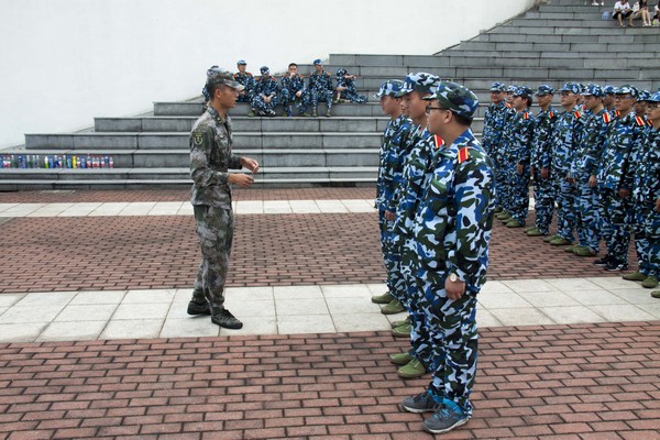 绿茵茵的青草和迷彩军装相互辉映,让同学们显得活力十足。从稍息、立正、跨立、停止间转法、站军姿等基本项目开始,教官们严格要求新生整理军容和端正军姿,不时亲自示范,并手把手纠正基本的动作,同学们在英姿飒爽的教官带领下认真训练,丝毫没有半点偷懒。休息间隙,教官领着学生们拉歌,互相放松。后保处和学生处为教官和新生提供帐篷、饮水与医药,时刻为他们提供细心周到的后勤服务。大一新生辅导员们跟队训练,关注每位新生的军训状况,配合教官严格考勤,确保军训有条不紊的进行。学院各级学生组织也在军训期间陆续招新,来到各营慰问新生,让大家充分感受到了学院这个大家庭的温暖与关怀。