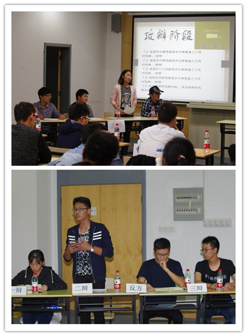 双方争锋相对,步步紧逼,现场的气氛迅速升温,达到白热化阶段。在随后的自由辩论环节中,辩手们精辟的措词,犀利的言辞,展现出逼人的气势。当观众提出一些精彩的问题后,双方辩手都给出了更加精彩的回答。比赛进入总结陈词环节,正反双方辩手清晰的思路和巧妙的陈词给观众留下了深刻印象。最后,正方的三辩韦伟同学摘得最佳辩手的称号,反方则获得最佳团队奖。