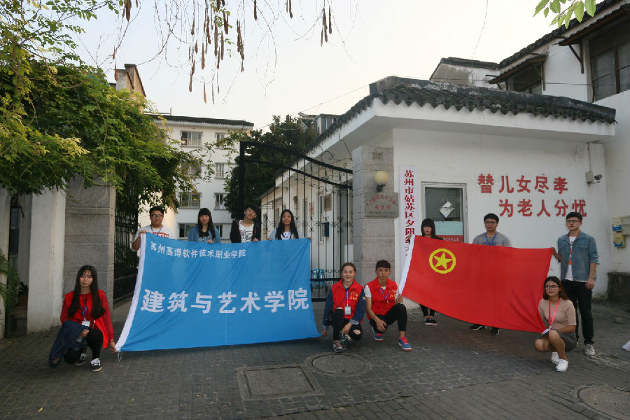 为了培养当代大学生的社会实践能力和社会公德意识,弘扬中华民族敬老爱老的传统美德,为他们晚年寂寞的精神世界献上一份关爱,苏州高博软件学院建筑与艺术学院团委学生会于2015年10月23日到夕阳红敬老院慰问老人。团委副书记李奕达,副主席程亮及部分大一干事参加了此次活动,为敬老院的老人们带去心灵上的慰藉,让他们感受到青少年的朝气和社会的温暖。
