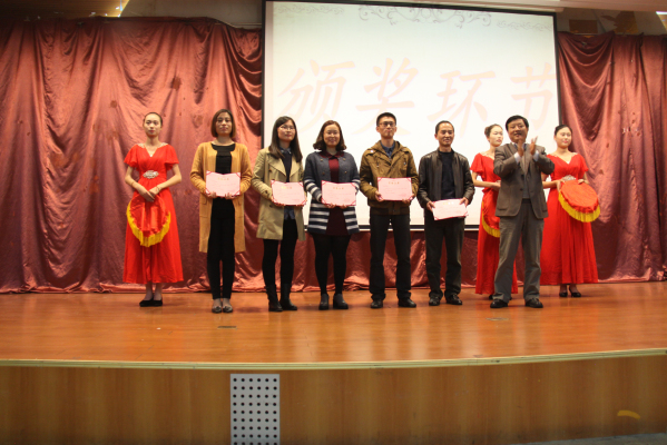 接下来,主持人邀请社科部张正炎主任对感恩月的活动进行总结,张主任认为,今年的感恩教育活动开展地深入、广泛,入脑、入心,很多老师授课感人肺腑,希望同学们将感恩之心付诸行动,为实现民族富强梦和个人成才梦而奋斗!然后学生处王绍福处长宣布“感恩”主题授课获奖老师和“感恩”征文比赛获奖同学名单。在授课比赛中,软工系孙亚梅老师、信工系钱国君老师获得一等奖,国商系蔡金娟老师、软工系尤绿树老师获得二等奖,苏南民间学院计学院孔庆婷老师、艺术学院马曙光老师获得三等奖;在感恩征文活动中,莫磊、吴静、李霄霄、吴玉环等30名同学荣获优秀征文奖。李建国院长助理为获奖老师颁奖,学生处副处长吴歧范、社科部副主任陶德胜为获奖同学颁奖。