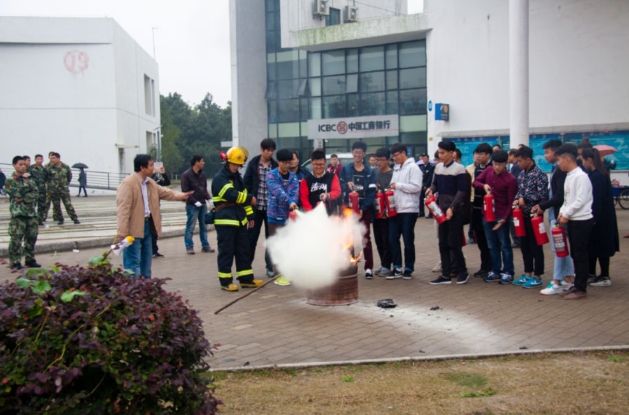 为了进一步提高同学们的应变能力和自护自救能力,在突发火灾面前能沉着应对,机智逃生,11月4日下午,保卫处、学生处组织2015级新生进行了消防疏散演练及灭火器操作演练。